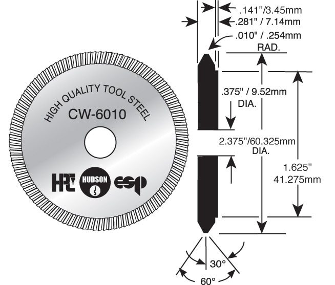 60° angle, small cylinder cutter for large volume duplication of a wide variety of key blanks on the Switch Blitz™.