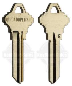 Most original Schlage keys, along with some aftermarket blanks, have a small E stamped on them where the shaft meets the bow