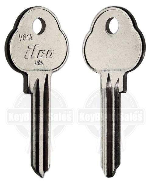 The ILCO brand 1636 key blank (shown below) is the correct blank for older applications using the V61A key blank.